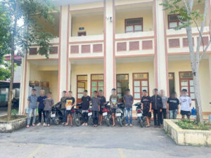 Tang vật thu giữ gồm 08 xe mô tô, 01 bình xịt hơi cay và 01 thanh kiếm.