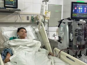Bị suy thận giai đoạn 5, Khánh phải trải qua thời gian điều trị nhiễm trùng máu kết hợp lọc máu