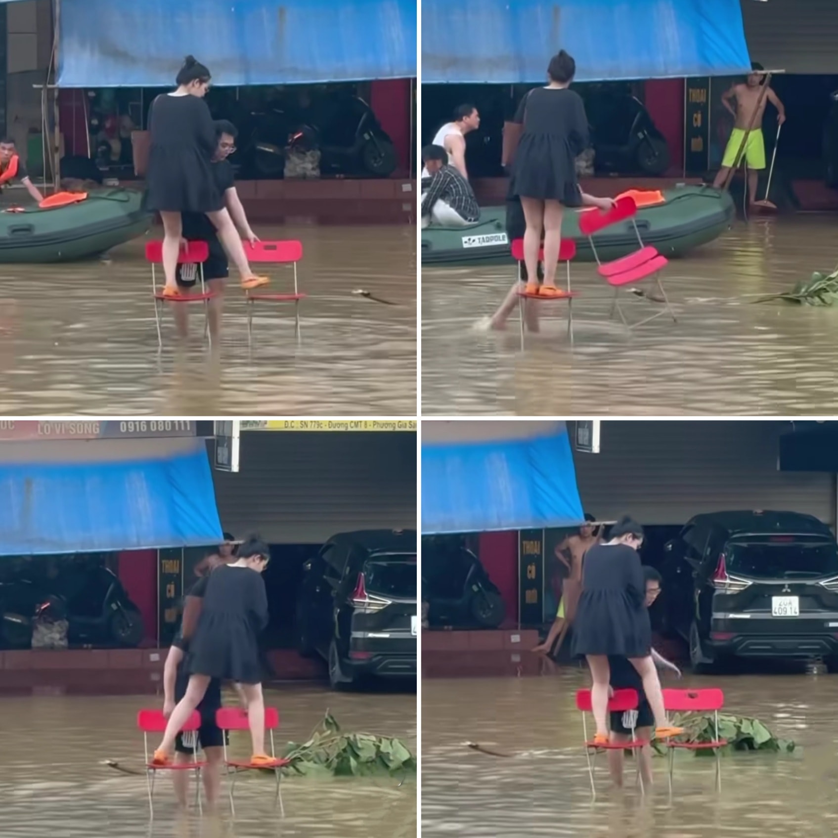 [VIDEO] Ngao ngán đoạn hội thoại của ông bà hàng xóm khi thấy chồng dìu vợ bầu bằng 2 chiếc ghế vượt qua đoạn đường ngập úng