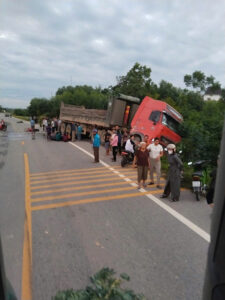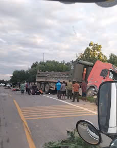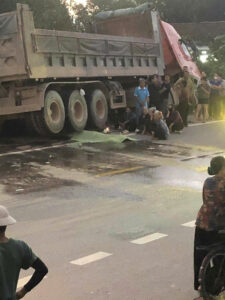 Đường tỉnh 294 đoạn Thôn Bình Minh-xã Lan Giới -Tân Yên(cũ), Bắc Giang: Ông đón cháu trên đường về xe tải t*ng ông ch*t, cháu đi viện. Adidaphat!