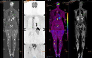 Qua chụp MRI sọ não, bác sĩ phát hiện bệnh nhân có nhiều ổ tổn thương di căn dạng biểu mô tuyến. Nghi ngờ di căn từ phổi hoặc đại tràng, bà được chụp CT phổi và phát hiện khối u ung thư phổi lớn ở đáy phổi trái. Đáng tiếc, ung thư đã di căn lên não, cột sống và xương chậu, tiên lượng xấu.